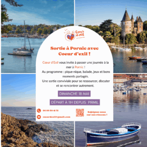 Le dimanche 18 mai, Cœur d’Exil vous propose une journée à la mer : pique-nique, balade et plage à Pornic au départ de Nantes.